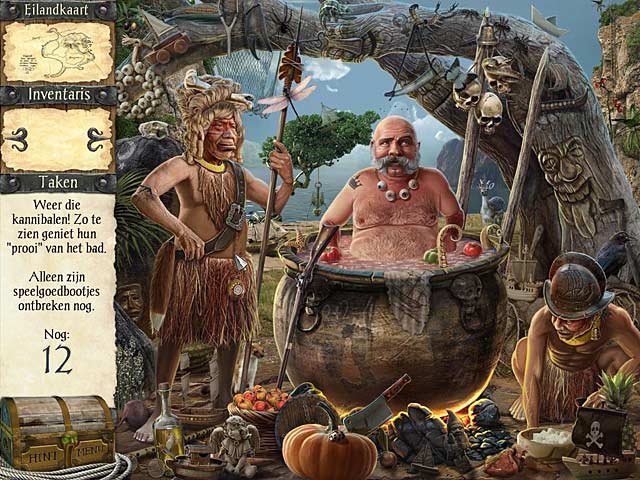 Robinson Crusoe en zijn vriend Vrijdag zijn terug met een nieuw avontuur in Robinson Crusoe en de Vervloekte Piraten! Nadat ze van het bewoonde eiland zijn ontsnapt zetten ze koers naar Brazilië. Vier weken later komen zij echter aan bij een onverkend stuk land bewoond door ondode piraten! Hef een mysterieuze voodoo-vloek op in dit komische verborgen voorwerp-spel! - Robinson Crusoe en de Vervloekte Piraten