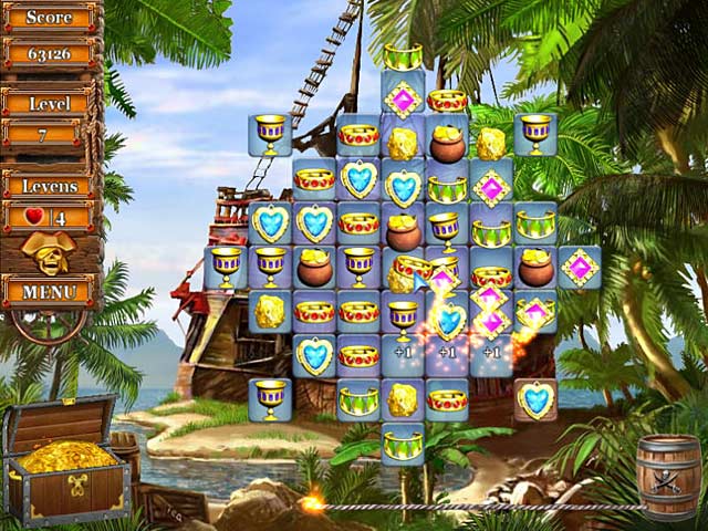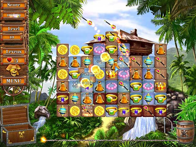 Stap in de schoenen van een avonturier op zoek naar een piratenschat, ergens in de Caraïben. Volg de oude schatkaart en verken het eiland en haar verschillende locaties. Wie weet kom je nog meer leuke schatten tegen op je tocht in Treasure Island, een drie-op-een-rij-paradijs met tropische sfeer! - Treasure Island