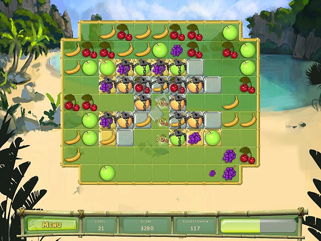 Speel Villa Banana, een fruitig drie-op-een-rij-spel! Sleep bananen, appels, peren en ander fruit naar de juiste plek om het speelveld vrij te spelen en verdien zo voldoende geld om je villa helemaal op te knappen. Schaf prachtige planten, tuinversieringen en andere decoraties aan om je villa helemaal af te maken! Villa Banana biedt je 60 fruitige levels en een aparte modus waarin je voor de hoogste score kan gaan! - Villa Banana
