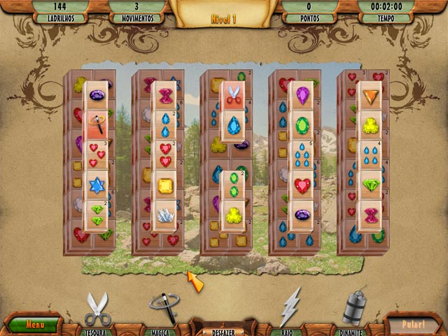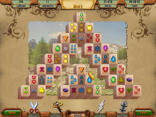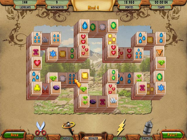Dê a si mesmo um bom momento de relaxamento e diversão neste jogo de Mahjong! Elimine o máximo de azulejos e termine em tempo recorde. Consiga ajuda e gratificações como tesouras, relâmpagos ou bombas para pulverizar todos os azulejos e ganhar pontos. Escolha entre os temas pedras preciosas, porcelana e café para decorar seus azulejos. Você vai conseguir as imagens em 3D? - 3D Mahjong Deluxe