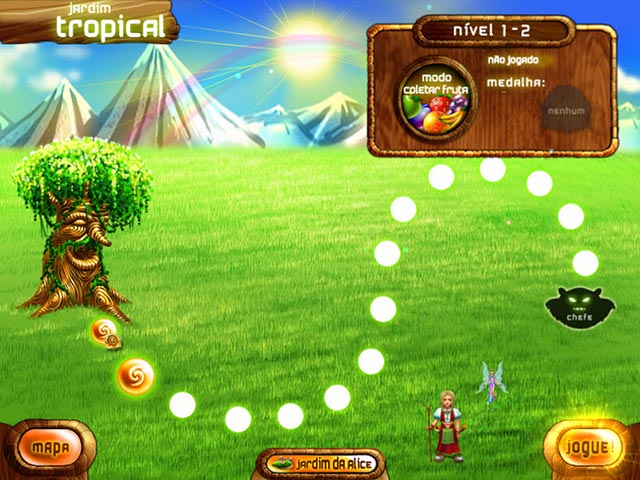 Livre o mundo de uma magia negra em Alice and the Magic Gardens, um divertido jogo de Combine 3 em português! Mude os blocos coloridos de lugar para revelar as frutas deliciosas e combinar as iguais para ganhar pontos e concluir o nível. Os itens de bônus poderosos, o martelo e a bomba de fruta adicionam ainda mais elementos extras de diversão para um jogo que já é emocionante! Pare os malfeitores e salve o dia em Alice and the Magic Gardens! - Alice and the Magic Gardens