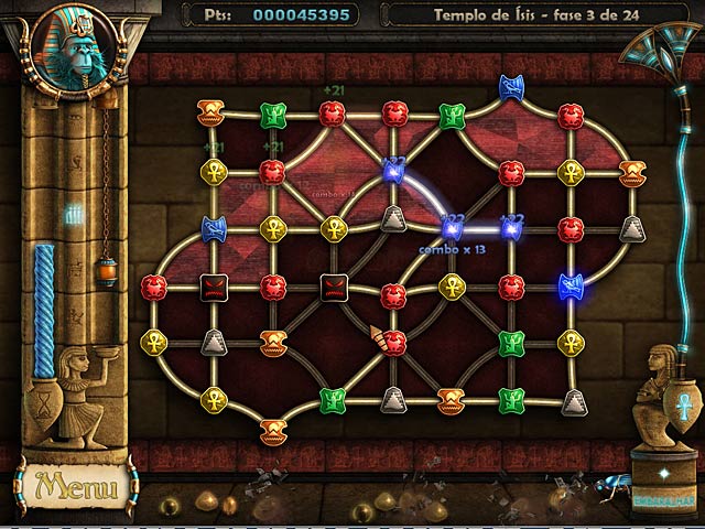 Embarque em uma longa viagem até Saqqarah, uma antiga morada egípcia, onde um eclipse ocorre a cada mil anos. Embaixo de um oásis subterrâneo existe uma pirâmide cheia de enigmas, tesouros e lendas. Nesse jogo de Combine 3 Você tem que ajudar a concretizar uma profecia egípcia para impedir que o deus do mal ressuscite da sua tumba. Para ganhar o jogo Ancient Quest of Saqqarah você deve concluir com sucesso sete diferentes tipos de enigmas. - Ancient Quest of Saqqarah