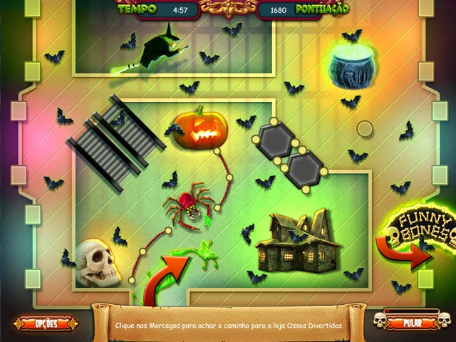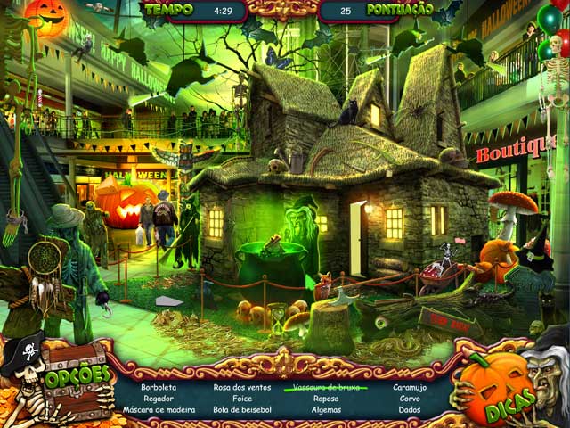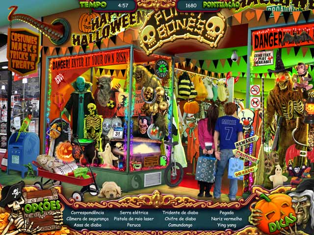 Quebre o feitiço do Capitão Pirata em Dia das Bruxas: A Maldição do Pirata, um jogo novo em português que você e seus amigos vão adorar. Todos estão se divertindo na festa do Dia das Bruxas, mas no decorrer da noite um nefasto Capitão Pirata lança um feitiço fantasmagórico sobre os convidados e transforma a folia em uma festividade espectral e assustadora. Como você e seus amigos estão presos, você precisa explorar o cenário assombrado para encontrar o Capitão Pirata responsável. Explore a cidade e suas paisagens, resolva múltiplos quebra-cabeças enigmas. Você será capaz de derrotar o nefasto Capitão Pirata e quebrar a maldição? - Dia das Bruxas: A Maldição do Pirata