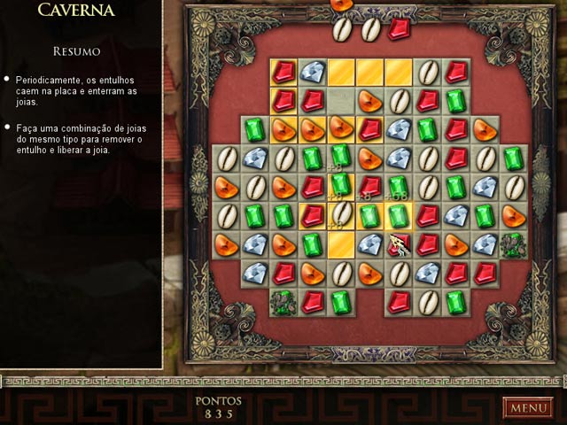 Jewel Quest: O Dragão de Safira:- Tabuleiros de joias brilhantes