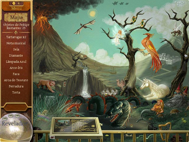Para revelar as páginas do Livro Mágico em The Magicians Handbook Cursed Valley, você terá que viajar pelo sombrio e misterioso Vale Amaldiçoado e acabar com o feitiço que foi lançado lá. Siga viagem na companhia da sua varinha mágica e encontre objetos ocultos encantados escondidos por todo o vale, que o ajudarão a quebrar o feitiço maligno. Usando os feitiços que aprenderá pelo caminho, você poderá afugentar as trevas e os outros inimigos da luz. Será que conseguirá remover a maldição do vale e descobrir qual é o seu verdadeiro nome? - The Magician's Handbook - Cursed Valley
