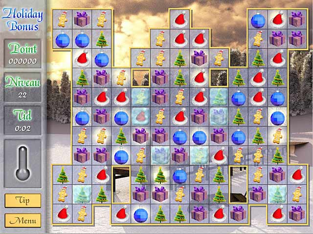 Holiday Bonus er et julespil til hele familien! Kom i julehumør i klassisk tre på stribe -stil. Årstidens symboler og dekorationer bliver til spændende og udfordrende niveauer. Match tre eller flere ting på stribe for at ryde alle banerne og opbyge større og større bonusser. Med 55 niveauer byder Holiday Bonus på masser af spænding til juledagene. - Holiday Bonus