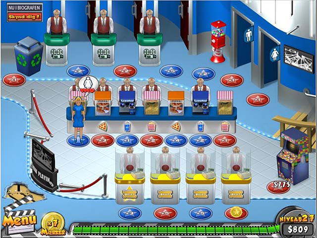 Genopbyg den historiske Bowmont-biograf og bring de store biografoplevelser tilbage til Movieville. Køb de nedslidte biografer overalt i byen og forvandl dem til indbringende forretninger. Tilfredsstil kunderne med hurtig betjening og lækre omgivelser. Bliv Megaplex-ekspert og få adgang til sjove arkade-spil, mens du restaurerer og opgraderer gamle biografer. Gå til filmen i Megaplex Madness! - Megaplex madness: Nu i biografen