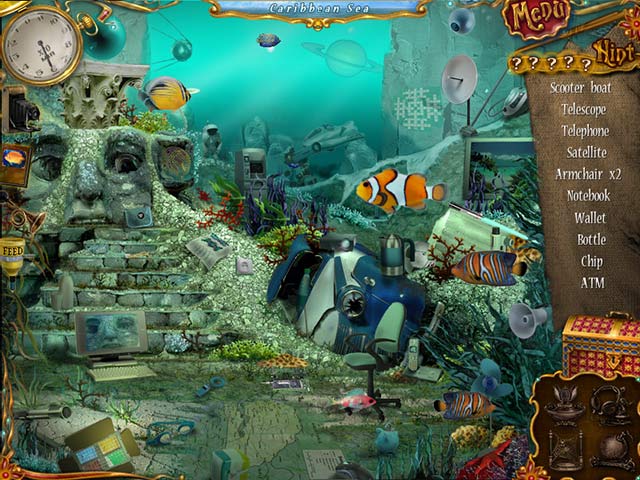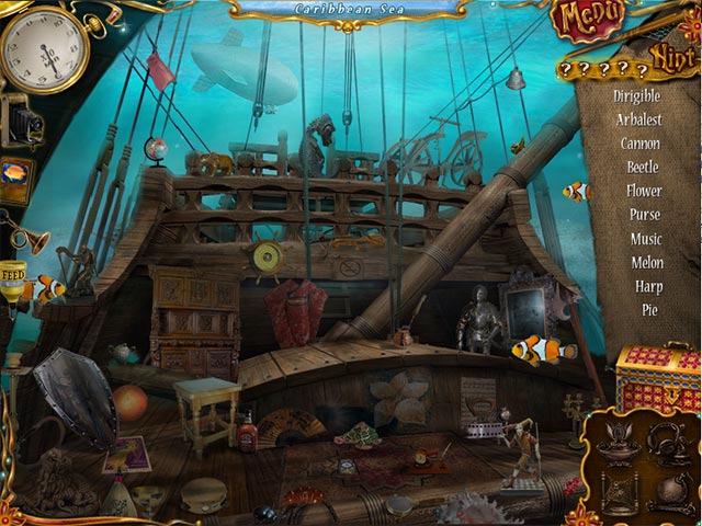 Set sail on the open seas, and help Little Carrie find her spirit. It`s been removed from her body by the ghost of a mysterious old man. Luckily she`s stumbled upon an ancient compass, but things aren`t quite as they appear. The pieces to the compass are scattered below the waves. Comb underwater scenes for hidden objects in gorgeous locations like the Sea of Japan, the Caribbean, and the Nile. Can you restore the state of things in 10 Days Under the Sea? - 10 Days Under The Sea