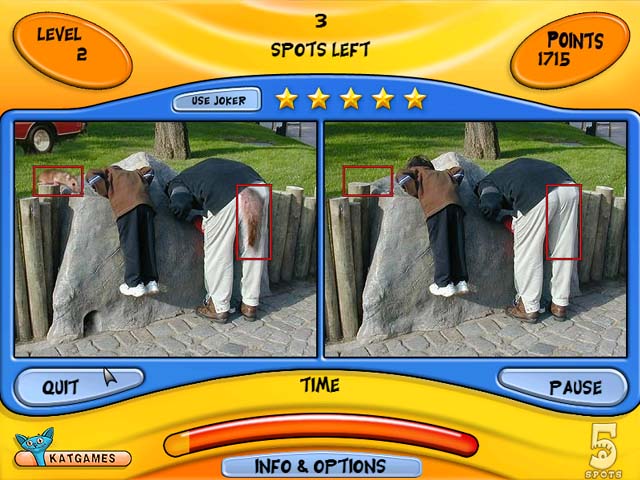 The sequel to the world's favorite spot-the-difference game, 5 Spots II is one of our most popular games; it simply must be played to be believed. The list of enhancements is incredible. Now there are four game modes, not simply variations, but original and very hilarious games in their own right. Whether or not you were acquainted with the original 5 Spots, there is something here for you. Download today and find out what that something is. - 5 Spots II