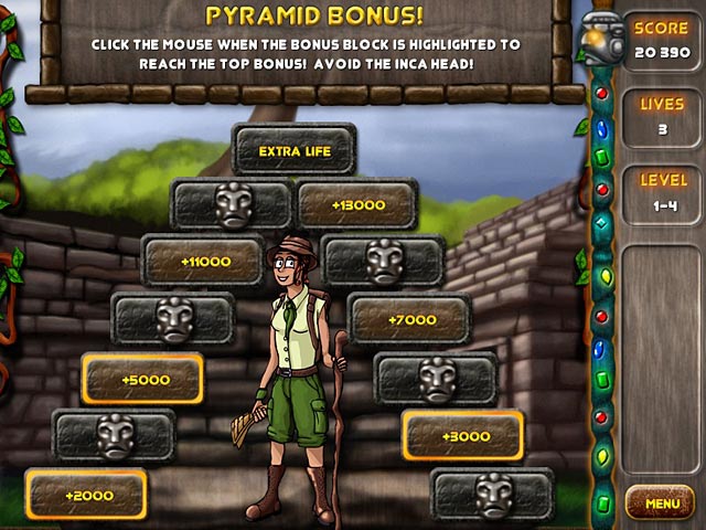 Exotic lands await the brave explorer. Grab your cart and start smashing bricks and release the shiny gems. Form different shapes with bricks to receive even greater treasures and make your way through the thick jungle. Beautiful graphics, playability, and sound will envelop the player in this easy to learn game which provides hours of fun. - Abundante