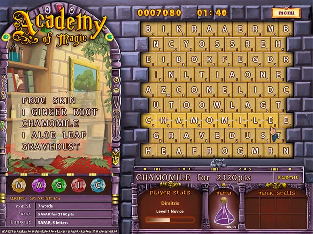 Use your magical powers and wisdom to become a Grand Master in this unique word game of magic and knowledge. Your goal is to make the longest possible words on a lettered-tile board, to collect points and increase your magic level from a Training Apprentice to a Grand Master of Magic. The Magic Spells you will learn in the game will help you in difficult times. Beware though! Black Obsidian Tiles are your worst nightmare and can end your studies in the Academy of Magic rather abruptly. - Academy of Magic - Word Spells