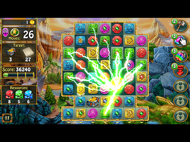 Solve incredible puzzles on an unforgettable journey through a strange and highly detailed world to activate the teleporter and save your uncle! Use local residents to overcome obstacles and continue your journey. Enjoy stunning artwork with original match-three gameplay. Discover dynamic, non-standard bonuses that offer additional options for combining bonuses to perform complex tasks. - Alchemist's Apprentice 2: Strength of Stones