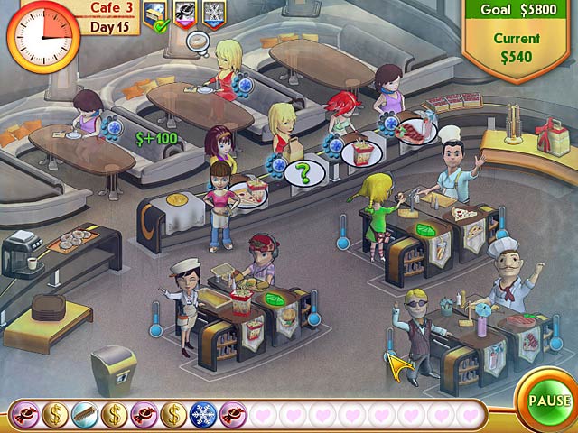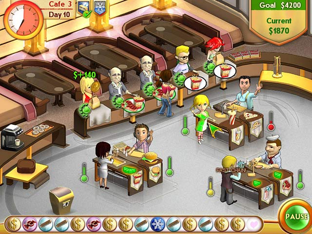 Amelie's grandfather has taken a long-deserved vacation, and he left her in charge of his historic cafe. But the old site has fallen into disrepair, and it's up to Amelie to bring it back to its former glory. Get ready for a large serving of excitement in this zany Time Management game that will leave you hungry for more! Help Amelie take charge of her granddad's faltering business. Serve everything from solo burger orders to complex combo platters, then set up your powerup bar for a huge payoff! - Amelie's Cafe