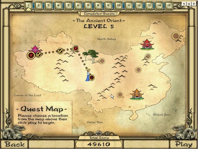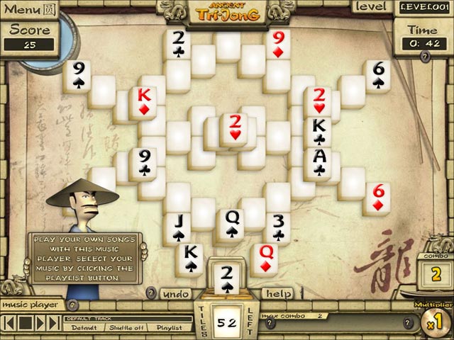 Ancient TriJong featurs two game modes, Quest and Survival - in the former, it's up to you to complete all the levels and make your way around the map; in the latter, choose from three difficulty levels (or challenge all three at once!) in more than 150 levels of gameplay. - Ancient TriJong