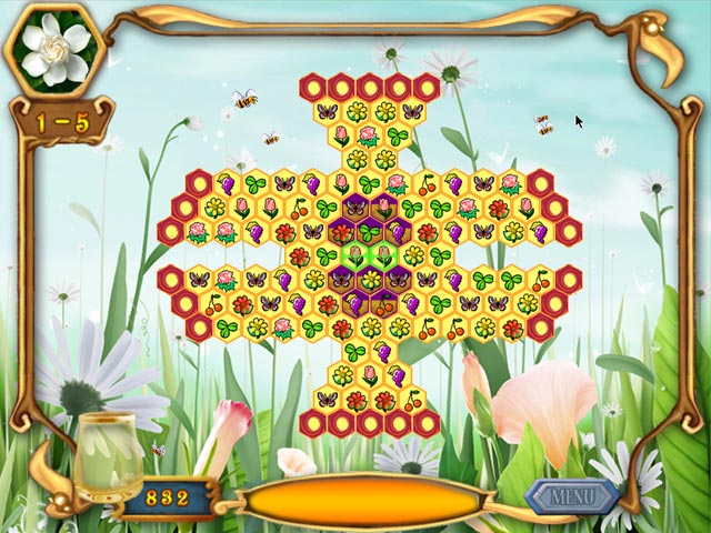 Control bees to collect honey. Move flowers to Match 3 or more flowers in a line. The flowers will disappear and produce honey. When honey fills the bottle, the mission is completed. Use bombs to remove flowers more than three at one time. Every level has a different layout, different honey positions, and chains to increase difficulty, it will be a new challenge. - Apiary Quest