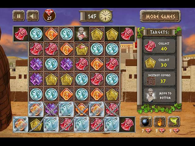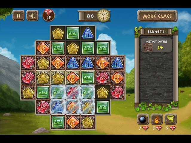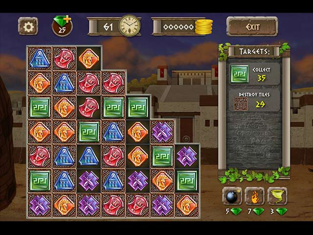 Match the ancient stones, artifacts and coins to save ancient Athens from the Persian invasion in this fun puzzle game. There are many different levels, each with different rules, various bonuses, boosts, limited time, frozen figures, chains and other obstacles. Athens Treasure is a challenging match-3 and more exciting than ever! Try to score high enough to earn 3 stars on every level! - Athens Treasure