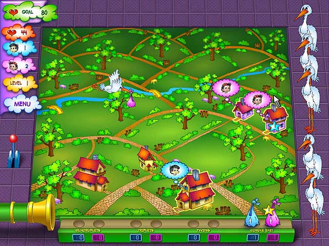 Babies are delivered by storks! Help them prepare their precious cargo for delivery on the baby production line. Transport your bundles of joy across towns and cities, collecting bonuses along the way. Strengthen your storks and increase their speed. Twins will bring you a double dose of extra points, and the quadruplet bonus might even get you into the headlines of tomorrow's paper! Take on the baby boom in Baby Blimp. - Baby Blimp