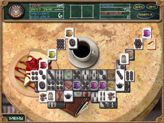 Order up a tall latte and immerse yourself in the wonderful world of coffee at Cafe Mahjongg. Match tiles to earn your favorite coffees from around the world! Try out the House Blend - for a story adventure or Espresso if Free Play is more your flavor. Customize and create your own unique blends - upload your favorite picture and use it as a background wallpaper while playing your favorite mahjong tile set. With over 120 original levels, Cafe Mahjongg is your gaming and coffee fix. - Cafe Mahjongg