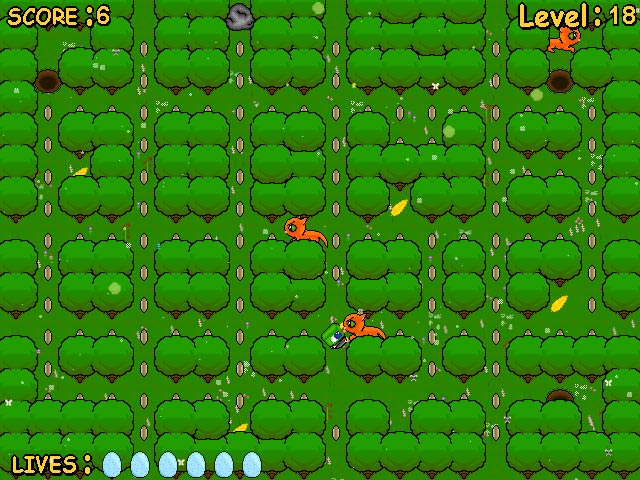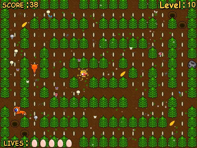It's harvest time! Play as Chicky or Ducky in this arcade-style game. Your goal is to collect as many seeds as you can before winter sets in. Gather seeds as you navigate through each maze-like level. But look out! You have to avoid the kitty at all costs. Keep an eye out for bonuses, like little worms you can snack on. It's time to harvest fun in Chick Chick Chicky! - Chick Chick Chicky