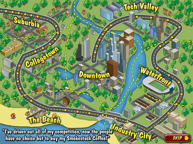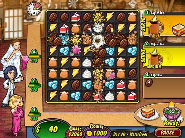 In Coffee Rush, The Smokestack Coffee Company is polluting the town with bad coffee and it`s up to you to open up your own coffee shop and take back the town! Swap coffee beans, milk, sugar and other tasty ingredients to prepare a menu full of tasty blends. Upgrade your shop, recipes, treats and bonuses. Need a jolt? Blast-off with Coffee Rush! - Coffee Rush