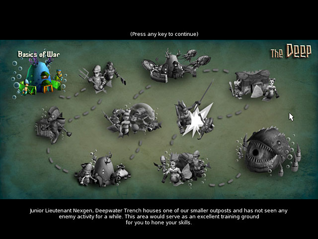Deep Quest takes you to the watery realms of the Deep, where an epic battle between Abyssians and Gordlons is underway. You will command the Abyssian Defence Force and undertake 10 Quests, each with unique maps and challenges. Upgrade your units and structures to win battles. Get lost in an engrossing story line with plot twists and great characters. - Deep Quest