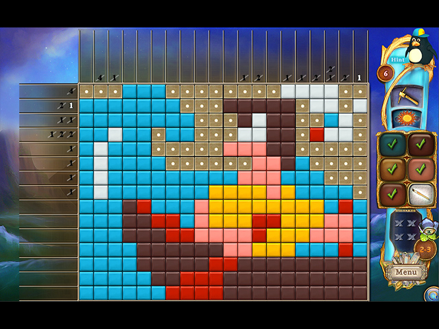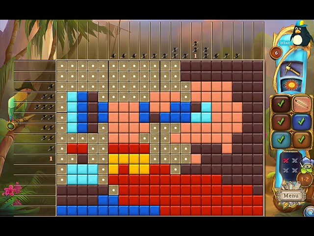In the latest Fantasy Mosaics adventure, the wind has carried Penguin Harry out into the open sea and overturned his boat! Help him explore a deserted island and find shelter! This new installment features a larger narrative-driven quest, mini games and interactive items! As always you will find a great set of new pixel art mosaic puzzles! - Fantasy Mosaics 46: Pirate Ship