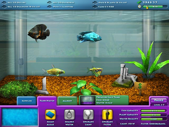 Become a Master Fishkeeper! Breed, raise, and sell a huge variety of fishes in this awesome aquatic Time Management game! Build a thriving business through a multitude of challenging fishtastic levels. Unlock new fishes and plants; upgrade your aquatic arsenal; and purchase food and medicine to keep your fishes happy and healthy! Take a breather in Sandbox Mode and customize your very own fish tank. Test the waters with Fishco today! - FishCo