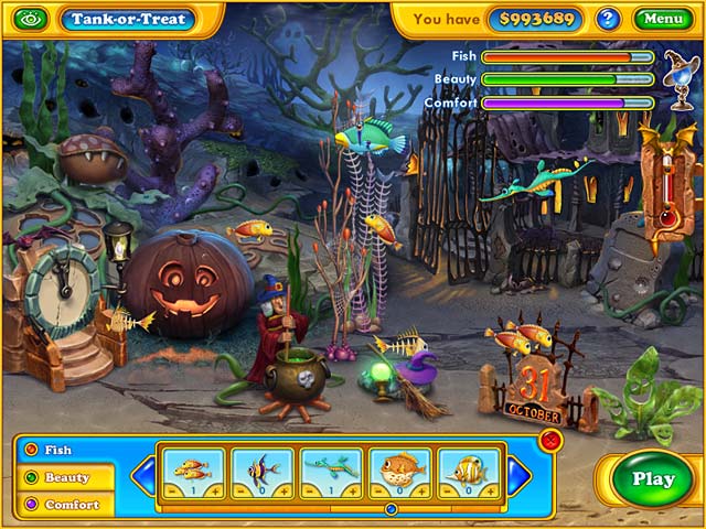 Build up your scary Fishdom! Earn cash and use it to buy quirky fish, boo-tiful ornaments, and awesome accessories, to create your spooktacular Aquarium! Create the eerie atmosphere of an underwater haunted house with witches, vampires and ghosts. Win trophies as you polish your aquarium design skills in this brilliant Match 3 sequel to Fishdom! Get splashed with Fishdom fun in Fishdom: Spooky Splash! - Fishdom - Spooky Splash