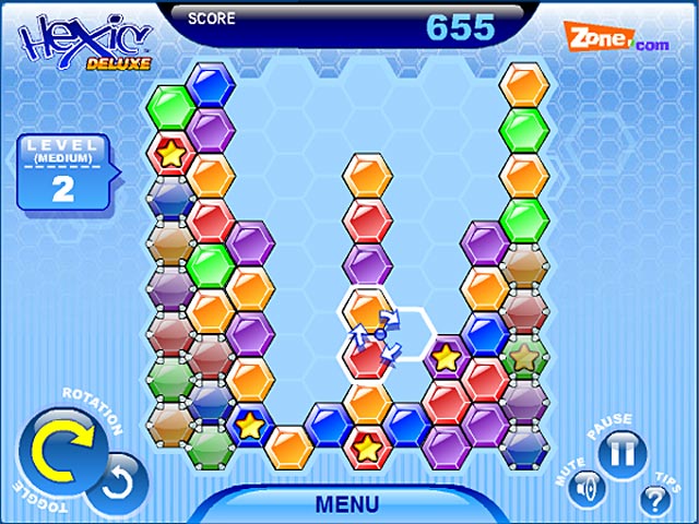 Create clusters of same-colored tiles in this mind-boggling puzzler. Earn bonus points for forming flowers and other special combinations. Play your tiles right, and you may even snag the elusive black pearl! - Hexic Deluxe