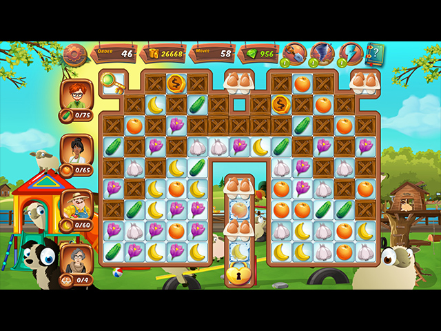 - Sell the farm goods through match-3 levels