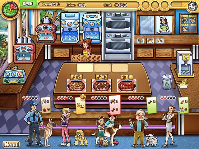 Jessicas looking to expand her cupcake shop by dishing up premium pet treats! Get her Bow-Wow Bistro booming by baking yummy delights for pets and their owners. Dazzle guests with decadent dcor and a kitschy kitchen where culinary creations appease the palates of people and pets. Use your Time Management talents to upgrade your shops and create a menu of healthy, tasty treats! - Jessica's BowWow Bistro