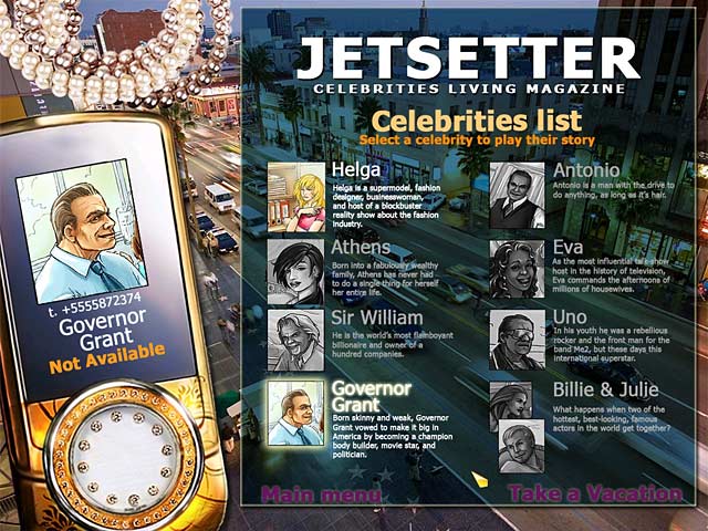 Unique clients have unique demands. Score rare luxuries for your demanding clientele in this Hidden Object game! If you’ve ever wanted a first-hand look into the hustle and bustle of the gossip-crazed world of the uncommonly important, Jetsetter is the game for you! - Jetsetter