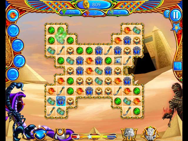 Everything changes for the young Pharaoh Thabit when a twist of fate threatens to take his wife Aziza away forever. The gods Isis and Osiris take pity on the Pharaoh and give him one chance to save his wife: he must construct a magnificent city, which will provide shelter for many joyful residents for many years to come. Travel back in time to the world of ancient Egypt and construct this magical city! Win gold and other building materials to erect houses and temples. Collect trophies and bonuses to enhance your buildings. Take advantage of the four elements water, earth, wind and fire and put your match 3 skills to the test. If you can do this, the powers of the God’s will be at your command. - Legend of Egypt: Jewels of the Gods