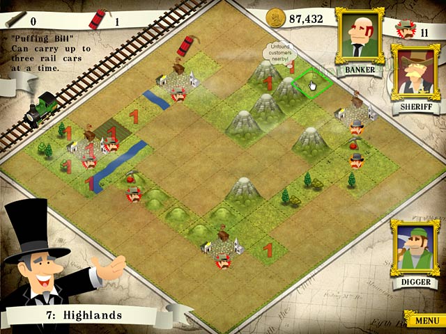 In Loco Mogul you play a seasoned railroader turned entrepreneur as you attempt to build a railroad empire. Search for hidden towns, mines and other customers in your territory then build a fully functional railroad, complete with train stations, junctions, bridges, and mountain tunnels. After you`ve built your railroad lines you get to run your trains and maximize profits by delivering materials to their destinations before your fuel runs out. - Loco Mogul