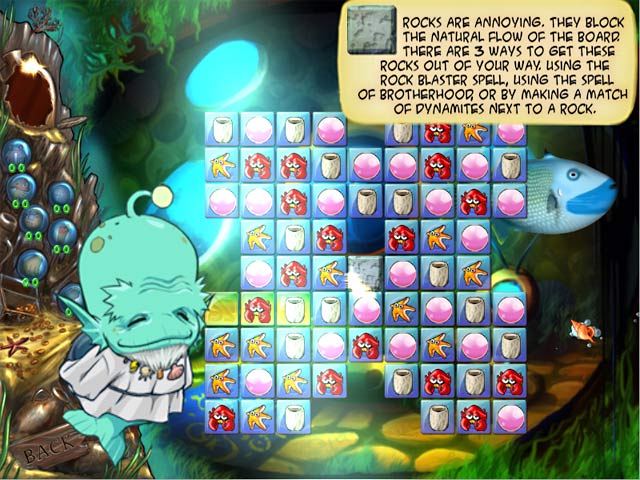 John is an avid scuba diver, and enjoys nothing more than diving deep into the ocean. On his latest dive, he meets the Sniffs, an underwater civilization that needs his help. John must help the Sniffs rebuild their once great city, by solving Match 3 puzzles, managing resources, and building structures. Collect resources and choose which structures to build, as you buy power-ups at the marketplace and watch as the Lost City of Aquatica grows! - Lost City of Aquatica