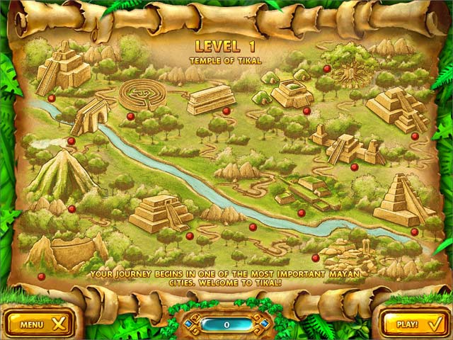 Embark upon a fantastic journey to the secretive empire of the Mayas. Go back in time 2,000 years and discover the mysterious temples and fabulous treasures of this once so powerful culture! Play the adventure mode and try to solve the mystical puzzle surrounding the ancient temple of Tikal or simply select your favorite Mahjongg boards on over 300 layouts. Experience classical Mahjongg in an unprecedented atmosphere of detailed graphics and fantastic animations! - Mahjongg: Ancient Mayas