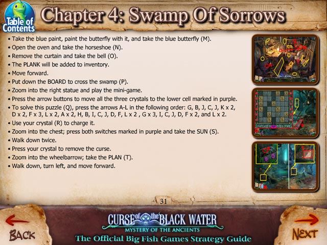 Follow our crystal clear instructions and helpful tricks to get you through the rough spots! Solve those tricky puzzles. Figure out where you’re supposed to go next. Get tips and hints from our handy Strategy Guide! Written by our Casual Game Experts, each Strategy Guide comes with large, detailed screenshots, and fantastic descriptions. - Mystery of the Ancients: The Curse of the Black Water Strategy Guide