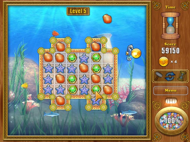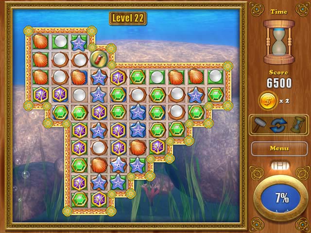 Step onboard the big submarine and wander the ocean. Collect treasures and coins to destroy matching groups of three or more objects. Be proactive and acquire power-ups like Bomb, Goldfish, and Lightning to improve your score. As a bonus, there`s a brave captain to help you navigate the game. Explore the depths of the ocean in Oceanix, a subterranean match game. - OceaniX