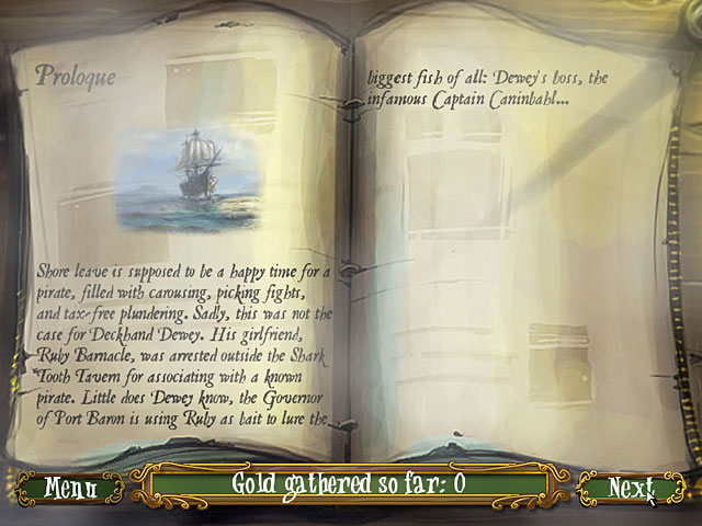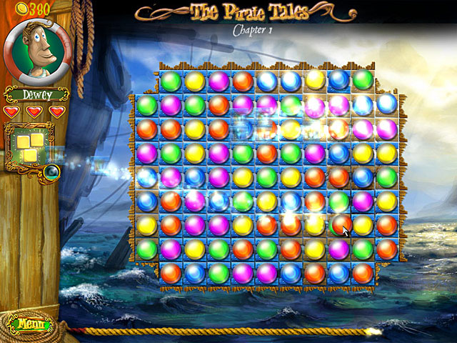 Follow the adventures of Captain Caninbahl, Barley, Deckhand Dewey, Ruby Barnacle, and Planky the Parrot as they plunder their way through caves, underwater shipwrecks, and dangerous port towns. The Pirate Tales is a matching puzzle game, spanning 100 levels. Perform typical pirating duties, plunder treasure, and fight opponents in your quest to rescue Dewey's girlfriend, Ruby Barnacle. - The Pirate Tales