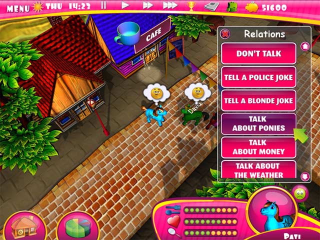 In Pony World 2 you create your own dream pony from scratch and help develop its character, education, career and make friends. Choose its looks and clothing, then change them at the stylist whenever you want. Take care of your pony to keep it happy and healthy. Hug your pony when it's sad or play together and learn new tricks in this charming simulation game. - Pony World 2