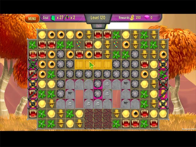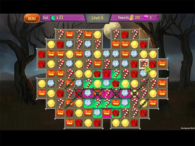 It's Halloween time and the Queen wants to celebrate! Help the Queen, and her loyal assistant Jack, decorate the garden in this unique match-3 game! Play over 130 levels, collect special jewels and purchase plants and decorations to design the spookiest Halloween garden ever! - Queen's Garden Halloween