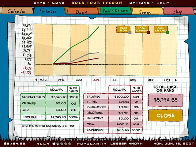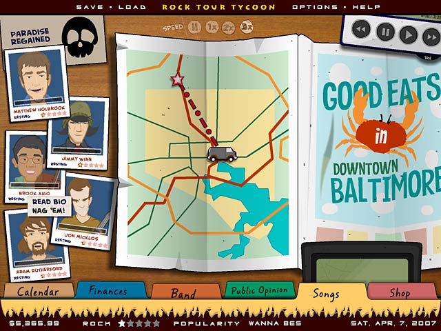 What does it really take to become a player in the industry? Step into Rock Tour and learn the cut-throat business of the music business. Work with a local band that has major potential to top the charts. Promote them and outfit them in the latest gear. Along the way you`ll run into greedy club owners, moody band members, random injuries, and falling record sales. Have you got the stamina to become a Rock Tour tycoon? Find out in this jammin` Time Management game. - Rock Tour