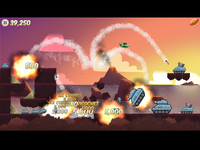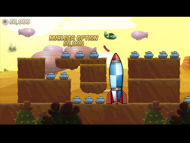 SUPPORT THE WAR EFFORT! The embattled nation of Fredonia must strike back at its invaders with a new top-secret weapon. Only one thing can put an end to this terrible war, Daylight Precision Sausage Bombing! Sweep areas clean of enemies by dropping an assortment of cured meats: slippery kielbasa, Vienna sausages, Scottish haggis, and more. Complete your missions by triggering ridiculous physics-based chain reactions of explosions! - Sausage Bomber