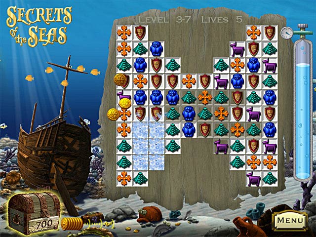 Discover sunken shipwrecks and explore the mysteries of one of the world's greatest lost treasures: the Crown of the Last Inca King. Secrets of the Seas takes you on a journey of discovery as you match ancient relics to unlock each level. Choose between playing against the clock in Adventure Mode or use your best strategies to beat the Untimed Mode. This unique game combines the best elements of some of your favorite games. Unlock the Secret of the Seas today! - Secrets of the Seas