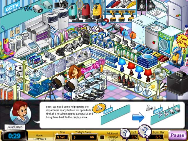 Shop-n-Spree is a unique blend of Hidden Object and Time Management gameplay. When a shopping super-center lumbers into town, it`s up to you to save the ailing family business! Keep your customers satisfied with great service and exciting upgrades or they just might take their business elsewhere. Endless aisles of supermarket seek and find fun with a variety of mini-games await you! Grab Shop-n-Spree today and get down to business! - Shop-n-Spree