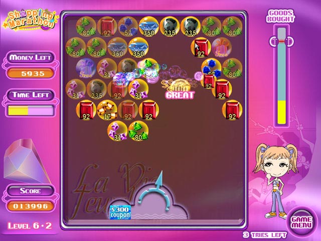 Pamper yourself with a Shopping Marathon! A combination of bubble popping and number puzzling will keep you entertained as you take on this unique shopping experience. Shop any way you like. Spend smart by comparing prices, or shop lavishly with your Prestige card. Explore a wide range of products and you will never come out from a shop empty-handed! - Shopping Marathon