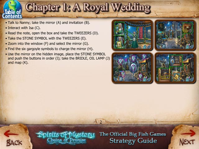 Follow our crystal clear instructions and helpful tricks to get you through the rough spots! Solve those tricky puzzles. Figure out where you're supposed to go next. Get tips and hints from our handy Strategy Guide! Written by our Casual Game Experts, each Strategy Guide comes with large, detailed screenshots, and fantastic descriptions. - Spirits of Mystery: Chains of Promise Strategy Guide
