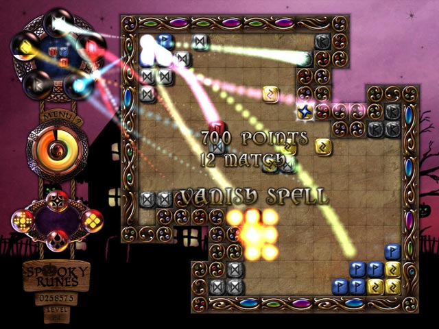 Spin and place runes to make lines of three or more in Spooky Runes, a fun and thrilling game for the Halloween season! Get into the spirit of the holidays and rotate the haunted runes to activate powerups and fill the orbs before the clock runs out! With creepy music, fun Match 3 gameplay, and eerie graphics, Spooky Runes will add thrills and chills to your Halloween season! - Spooky Runes