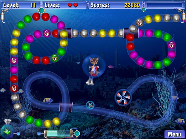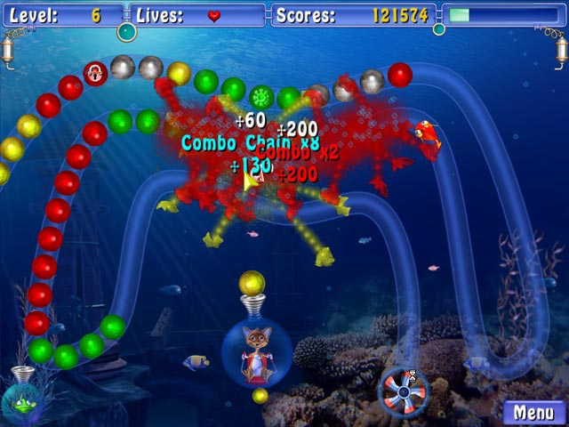 Strap into your mini-sub and dive in to a marble-popping adventure! Sprill challenges you to match colored marbles as they roll through underwater tubes. Earn powerful upgrades that can clear the screen in a spectacular display of visual effects. Do well, and you'll earn the ability to use your assistant, a cute tropical fish that can eliminate marbles with lightning strikes and more. Starring charming new characters, Sprill is sure to delight your entire family! - Sprill
