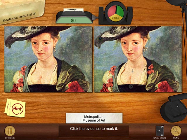 Thieves, vandals, and counterfeiters have joined together for the heist of the century. You'll need keen visual skills to analyze the evidence, piece together clues, and track down the suspects in this Hidden Object game. Includes more than 120 challenges, beautiful images from around the world, and multiple puzzle types to engage your powers of perception! - Suspects and Clues